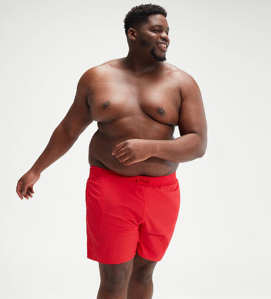 Unsere klassische, rote Essentials Badeshorts ist jetzt in den Größen 3XL – 5XL erhältlich.