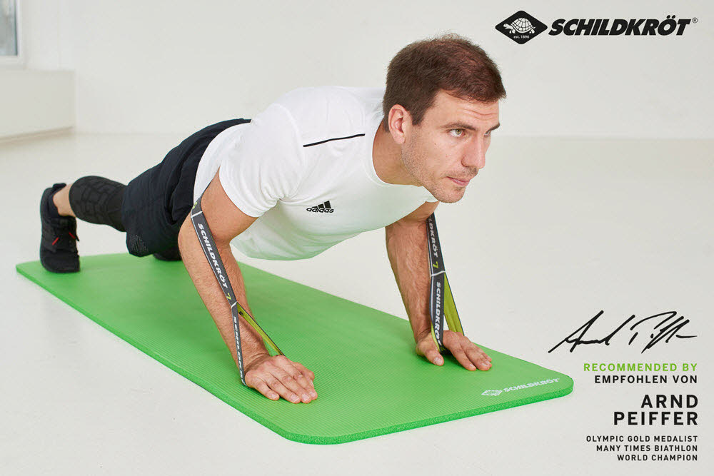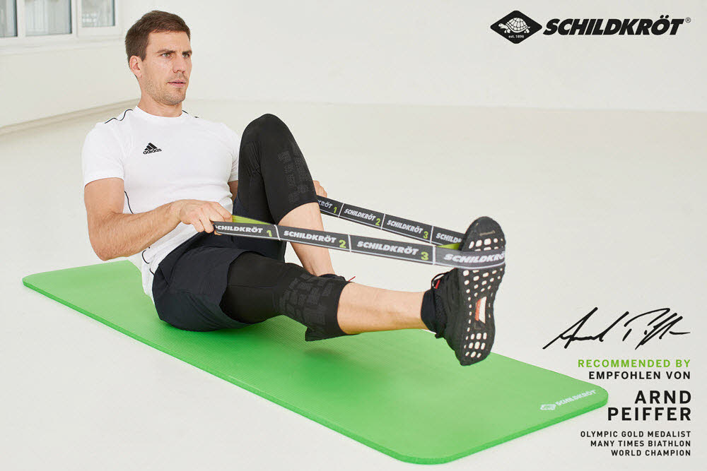 Das vielseitige Trainingsband (Länge ca. 92 cm, Breite 4 cm) besitzt einen mittleren Härtegrad (15,0 kg). Durch die eingearbeiteten Schlaufen kann die Intensität variiert werden. Darüber hinaus bietet das elastische Band vielseitige Übungsvarianten ohne zeitraubendes Verknoten und Wickeln. Leicht zu transportieren ist das Schildkröt Fitness Elastikband der perfekte Reisebegleiter.