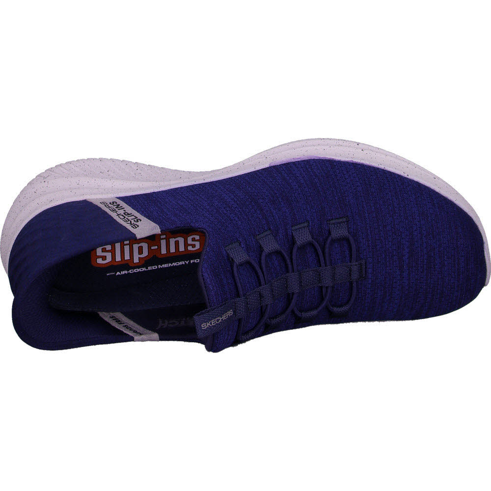 TOUCHLESS FIT™: Leicht zu kombinieren und ultra-bequem – die Skechers Hands Free Slip-ins™: Ultra Flex 3.0 - Right Away. Mit einzigartigem Comfort Pillow™ in der Ferse. Dieses Modell verfügt über ein Stretch Fit®-Obermaterial aus Jersey-Mesh mit Stretch-Schnürsenkeln und eine gepolsterte Skechers Air-Cooled Memory Foam®-Einlegesohle.
