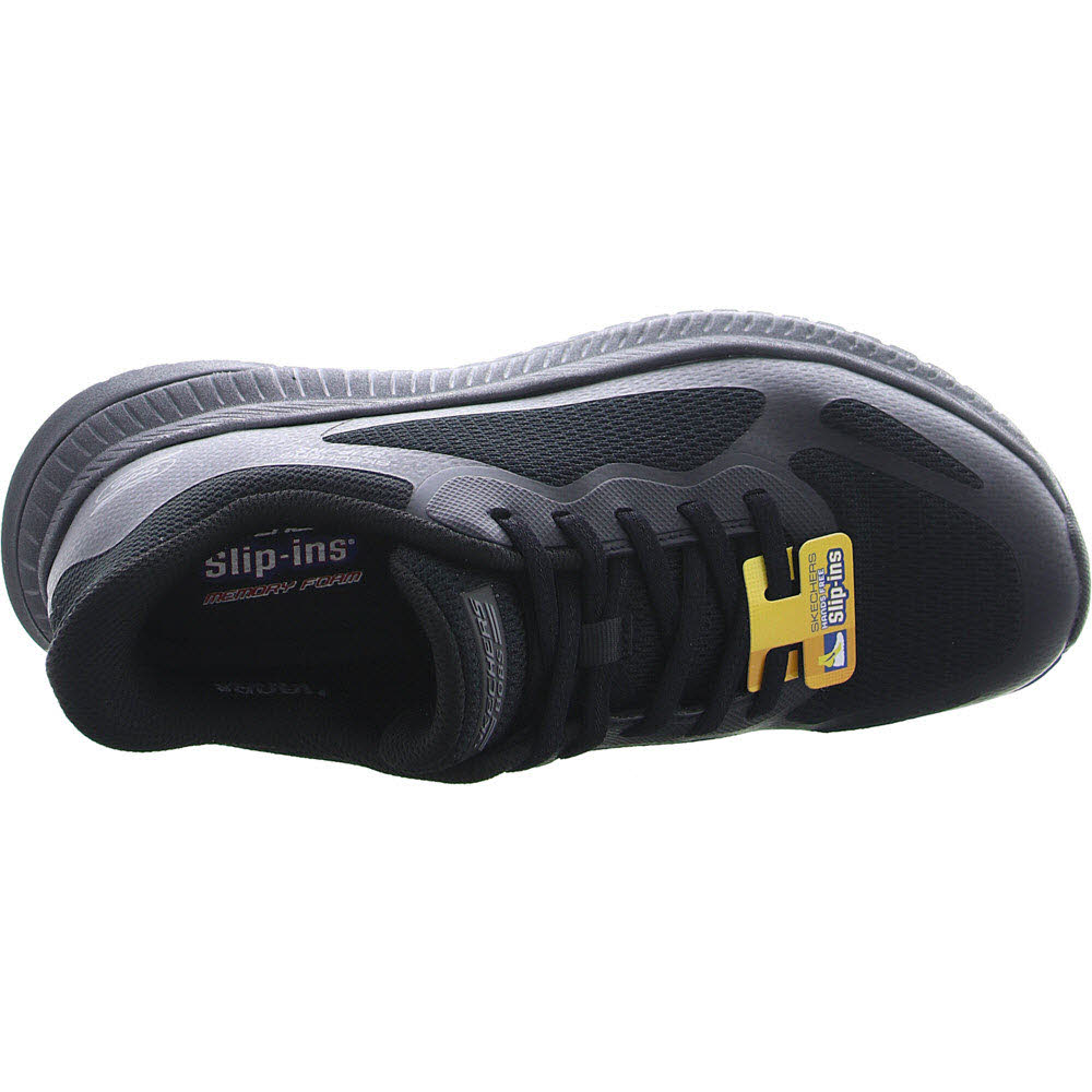 und verfügt über ein Obermaterial aus Mesh und Synthetik mit Stretch-Schnürung und eine gepolsterte Skechers Memory Foam-Innensohle.