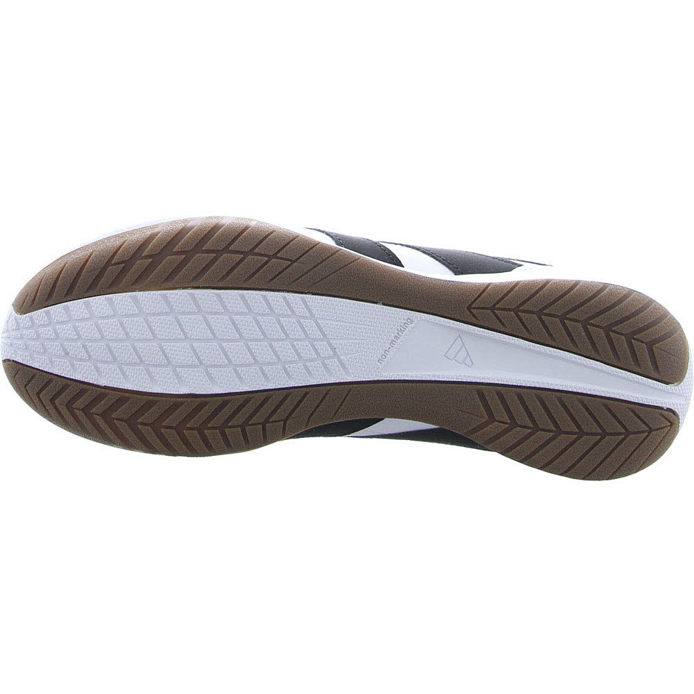 Unterhalb greift die Gummiaußensohle auf glatten Hallenböden, ohne Spuren zu hinterlassen.