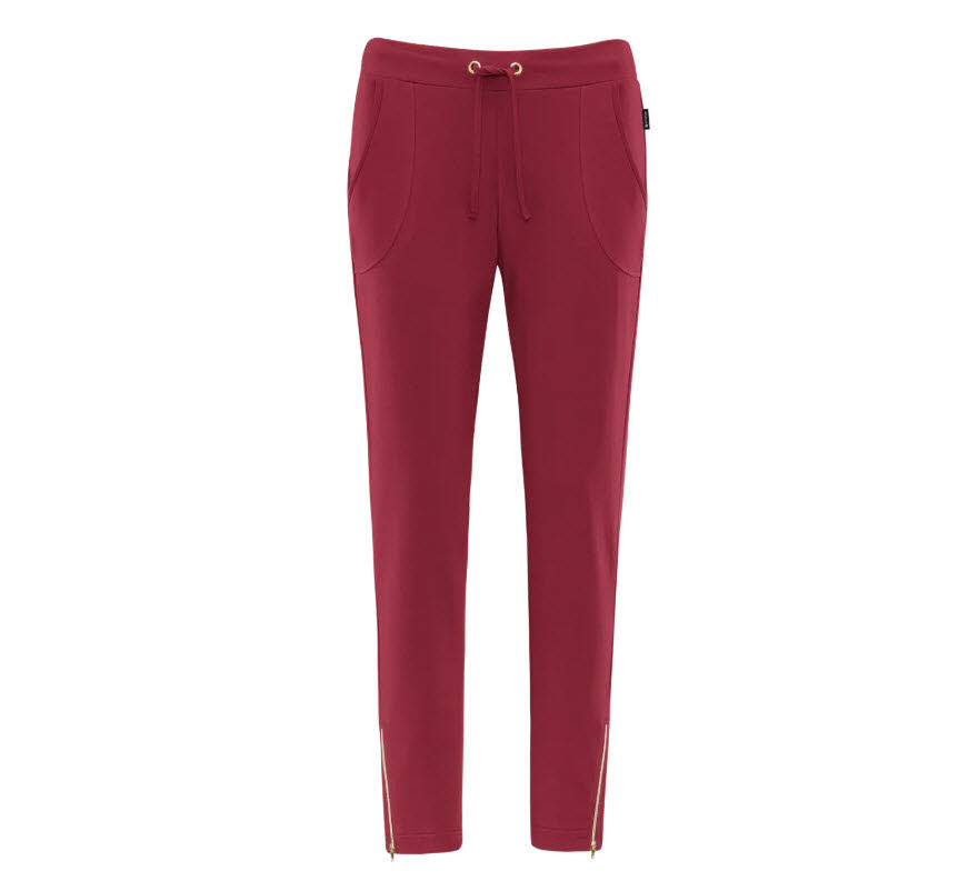 goldfarben schimmernder Reißverschluss am Hosensaum, schmal anliegende Passform, elastische Seitennaht,