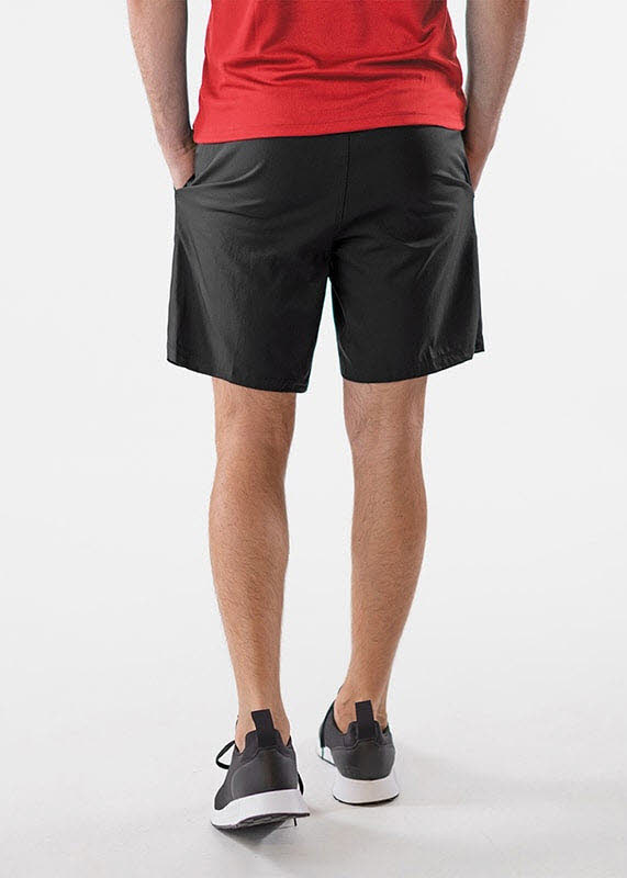 Die kurze Hose wird durch Seitentaschen und einen elastischen Bund mit Kordelzug optimiert.