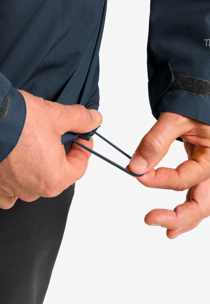 Mithilfe des Zugbands passt du die Kapuze und den Saum nach Belieben an. Kleine Wanderutensilien verstaust du in den drei Taschen.