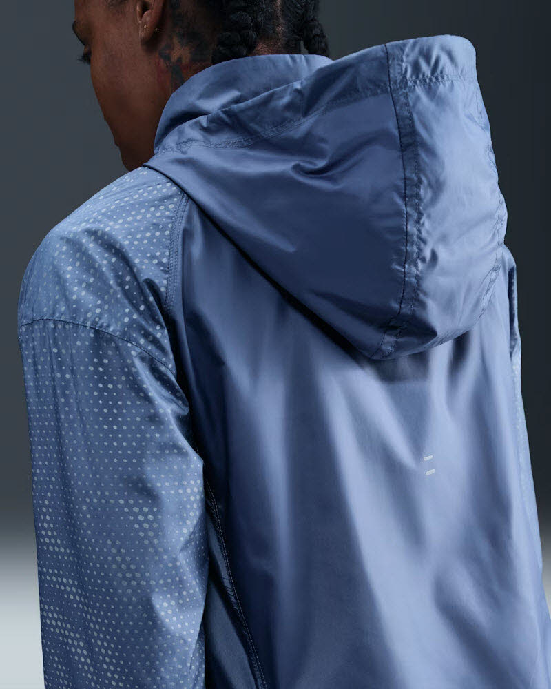 Erhöhe dein Tempo zu jeder Tag- und Nachtzeit. Diese leichte Jacke hat reflektierende Details, die deine Ausrüstung zum Strahlen bringen.