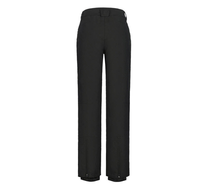 Hosenbeinabschlüsse mit Reißverschluss. Feste Schneefänge in den Hosenbeinen. Extrahoher Bund auf der Rückseite.