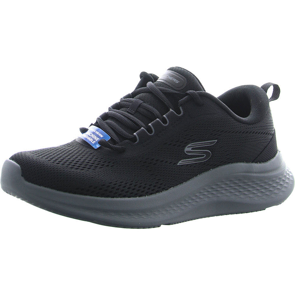 Dieses vegane Design verfügt über ein technisches Mesh-Obermaterial mit Schnürung, eine stoßdämpfende Skech-Lite-Zwischensohle