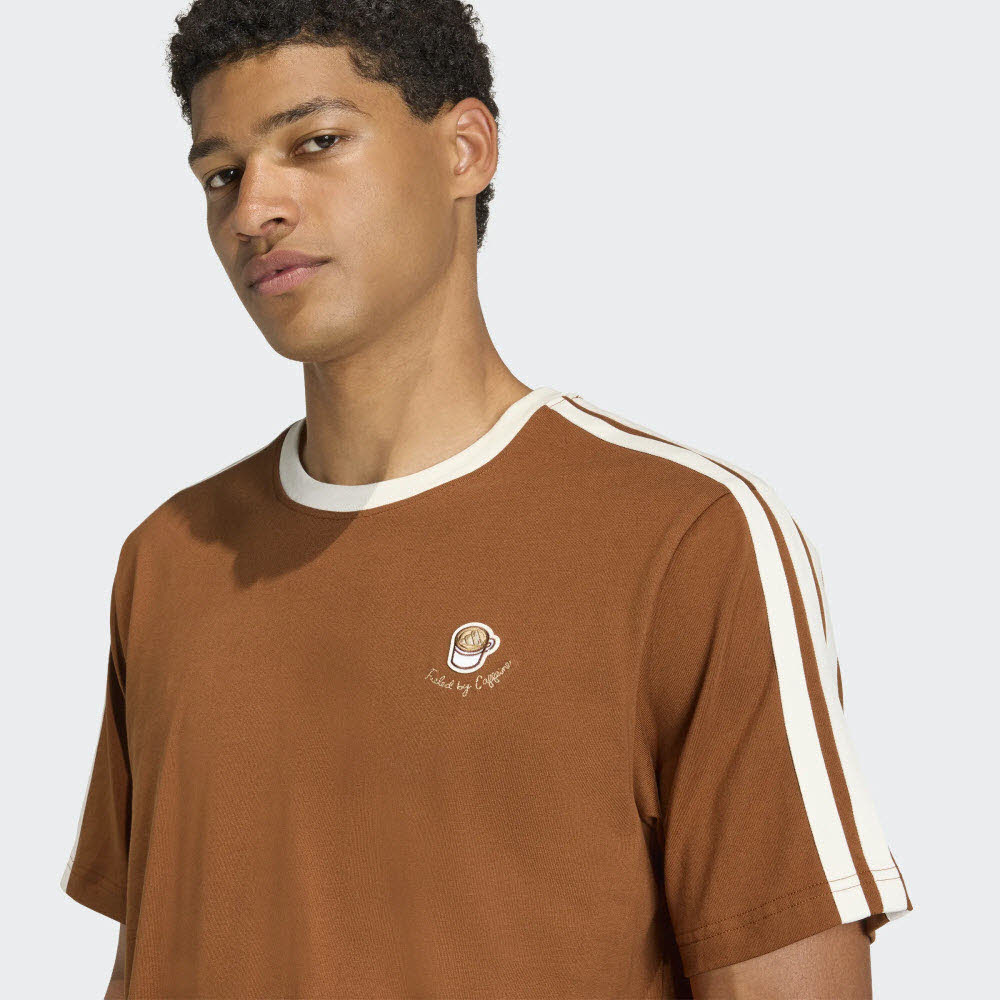 Die Kaffeetassen-Grafik verleiht dem T-Shirt Charakter, während der dichte Logo-Siebdruck und die applizierten 3-Streifen auf der Schulter einen Hauch von adidas Flair versprühen.