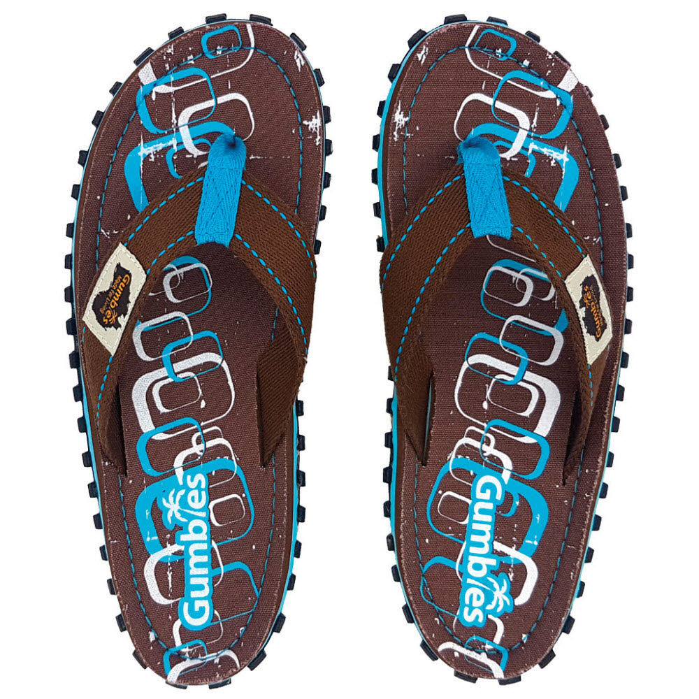 Sie sind bequem, modisch, sportlich und klassisch. Durch das Braun bilden das geschwungene Fußbett, der tragefreundliche türkise Zehensteg und die weichen ebenfalls braunen Baumwollriemen eine ästhetisch und optisch perfekte Einheit.