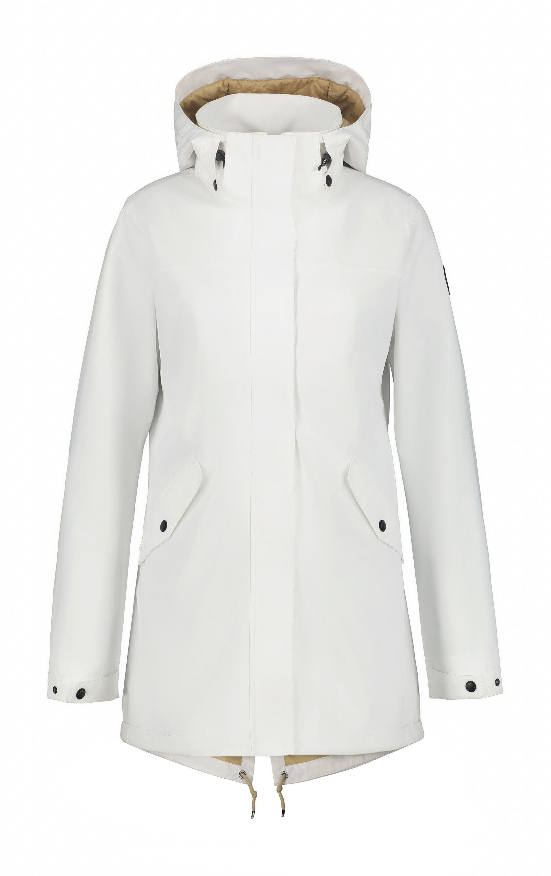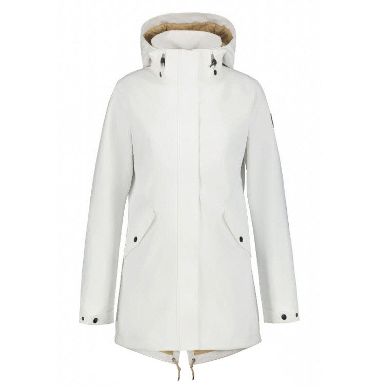 Icepeak Jacke für damen. Verstellbare und abnehmbare Kapuze. Verstellbare Ärmelbündchen. Zwei Vordertaschen mit Knöpfen.