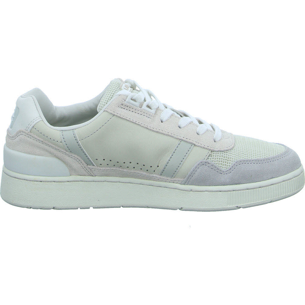 Ein essentieller Tennisplatz-Schuh aus den Archiven: Der T-Clip kombiniert die Sideline Silhouette mit 80er Style und urbanem Flair. Die Sohlenkonstruktion vereint Nubukleder, weiches Veloursleder und sportliches Mesh, während die Perforierungen an den Tennisplatz erinnern. Das Krokodil am seitlichen Schaft und der LACOSTE Schriftzug sorgen für ein kultiges Finish.