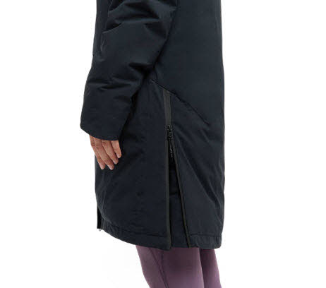 Ein seitlicher Reißverschluss bietet dir die Möglichkeit, die Jacke auch beim Radfahren einzusetzen.