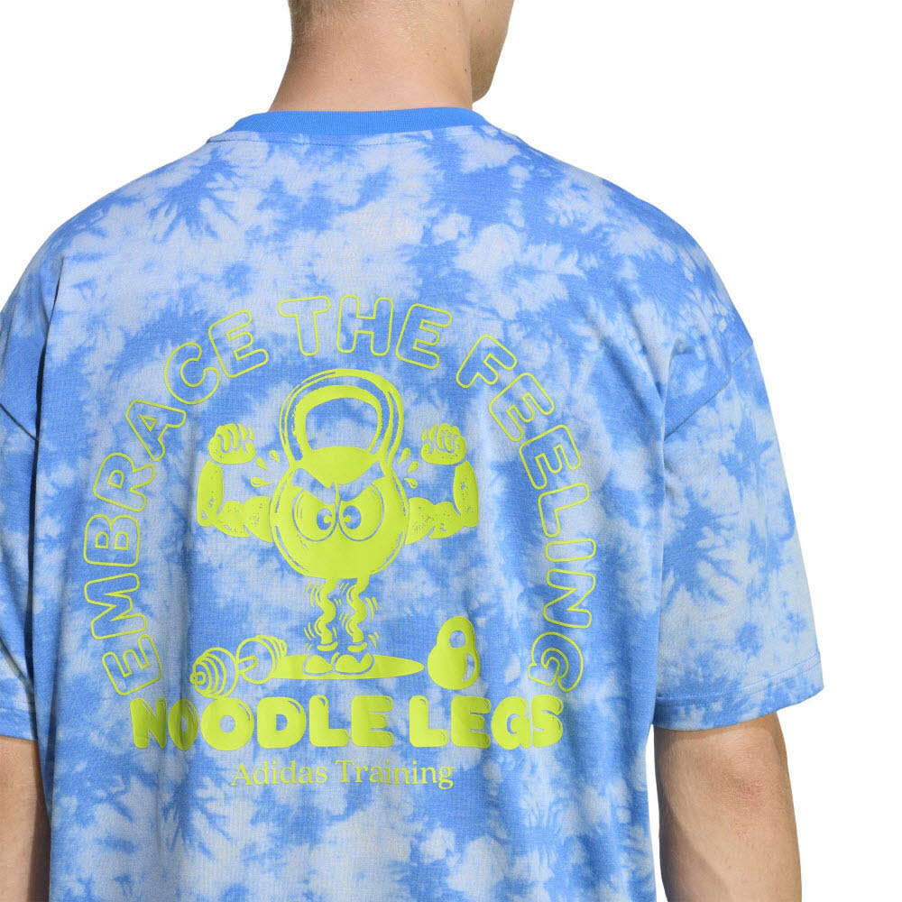 Das T-Shirt hat einen humorvollen Spruch mit „Nudelbeinen“, der umso nachvollziehbarer wird, je härter du trainierst.